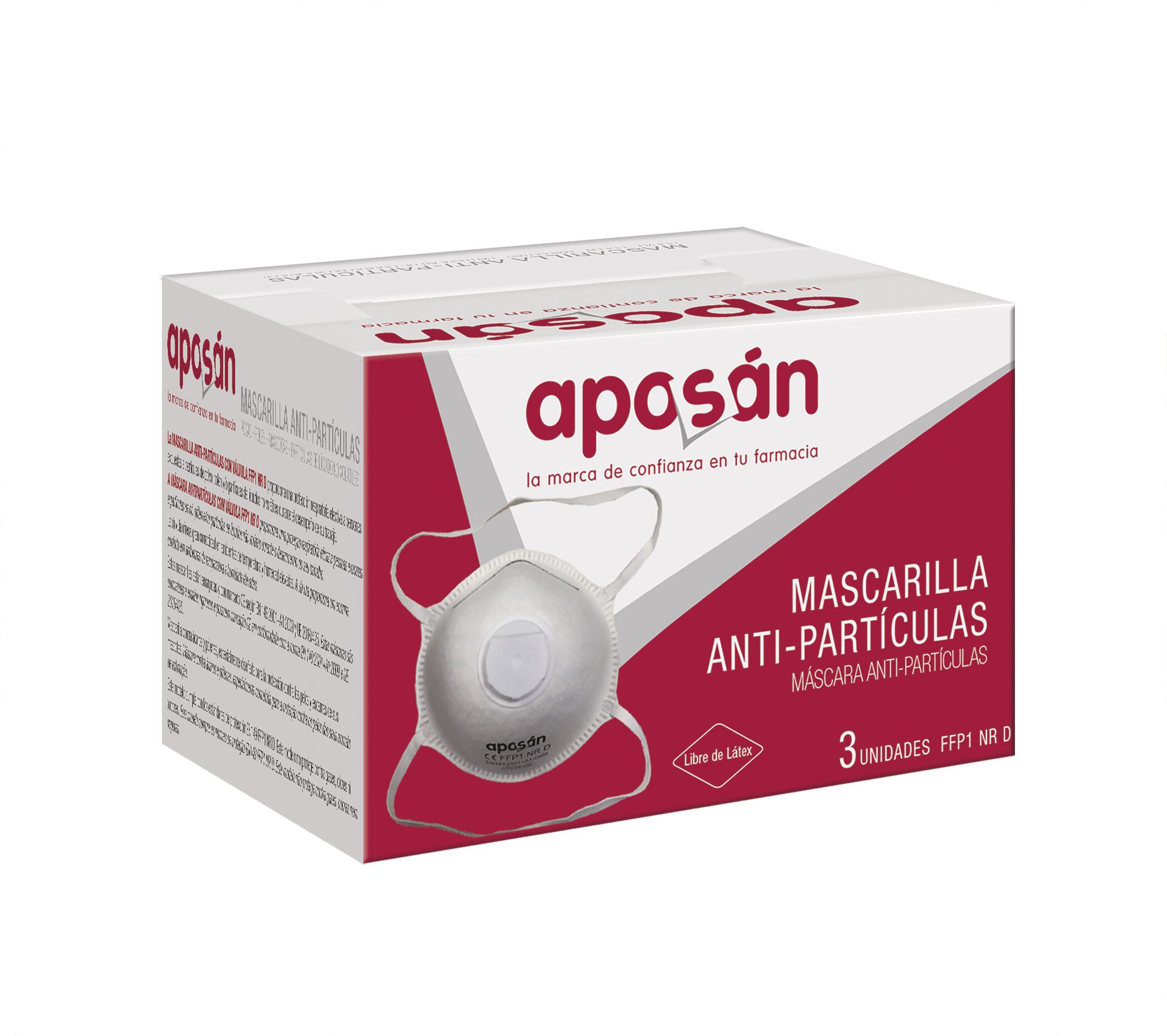 Mascarillas anti-partículas con válvula FFP! NR D, que proporciona una protección respiratoria efectiva a personas expuestas a partículas de polvo, polen y/o partículas de líquidos no volátiles durante el desempeño de su trabajo. La válvula ofrece gran comodidad en ambientes de temperatura y humedad elevadas. Estas mascarillas están ensayadas y con marcado CE según EN 149:2001+A1:2009 y UE 2016/425. Mascarilla contra ácaros y pólenes, especialmente diseñada para la protección contra los pelos y escamas de sus mascotas. Este modelo cumple con Ios estándares de protección EN149 FFP1 NR D. Envase con 3 unidades
