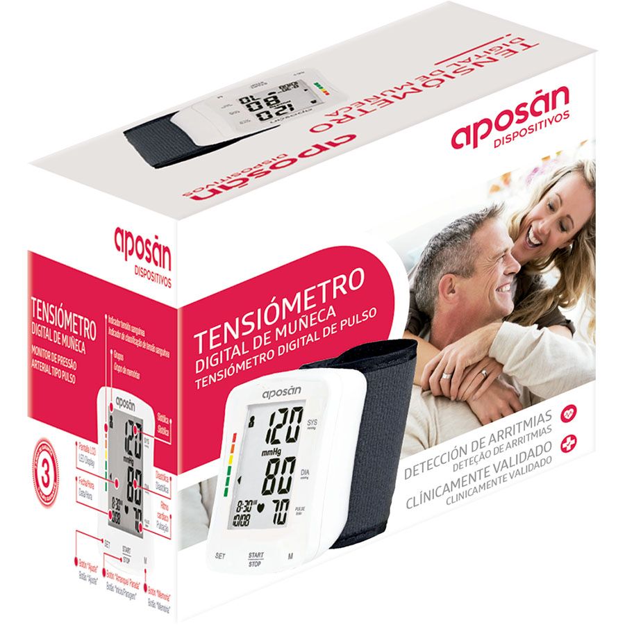 El Tensiómetro de Brazo Aposán mide la presión sistólica, diiastólica y pulso. Se trata de un dispositivo eficaz y seguro que ofrece elevada precisión en sus mediciones.