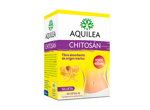 Chitosan Aquileaes una fibra marina extraída de la chitina, un componente del caparazón de los crustáceos. Parte de las grasas de la dieta son recogidas por la chitina y de esta forma el cuerpo no las puede absorber y son eliminadas directamente por el organismo, ayudando a disminuir el aporte calórico precedente de las grasas de la dieta.