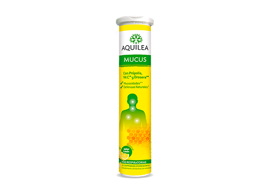 Aquilea Mucus contiene Serratiopeptidasa, N-Acetilcisteína, própolis, vitamina C y Drosera. La vitamina C contribuye al funcionamiento normal del sistema inmunitario y la drosera es una planta que contribuye a mantener el nivel óptimo de mucosidades y a la salud de las vías respiratorias.