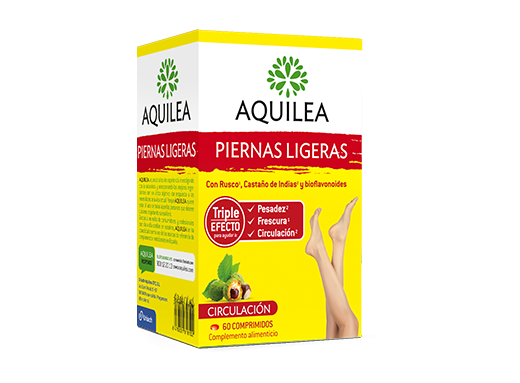 Aquilea Piernas Ligeras contienen una combinación de Bioflavonoides ( Diosmina, Rutina, Hesperidina) y plantas como el Rusco y el Cataño de Indias y Vitamina C. El Rusco ayuda a revitalizar, refrescar y aporta sensación de ligereza en las piernas y el Castaño de Indias que ayuda a reducir la sensación de pesadez en las piernas y a mantener la circulación venosa normal. La vitamina C contribuye a la formación normal de colágeno para el funcionamiento normal de los vasos sanguíneos.
