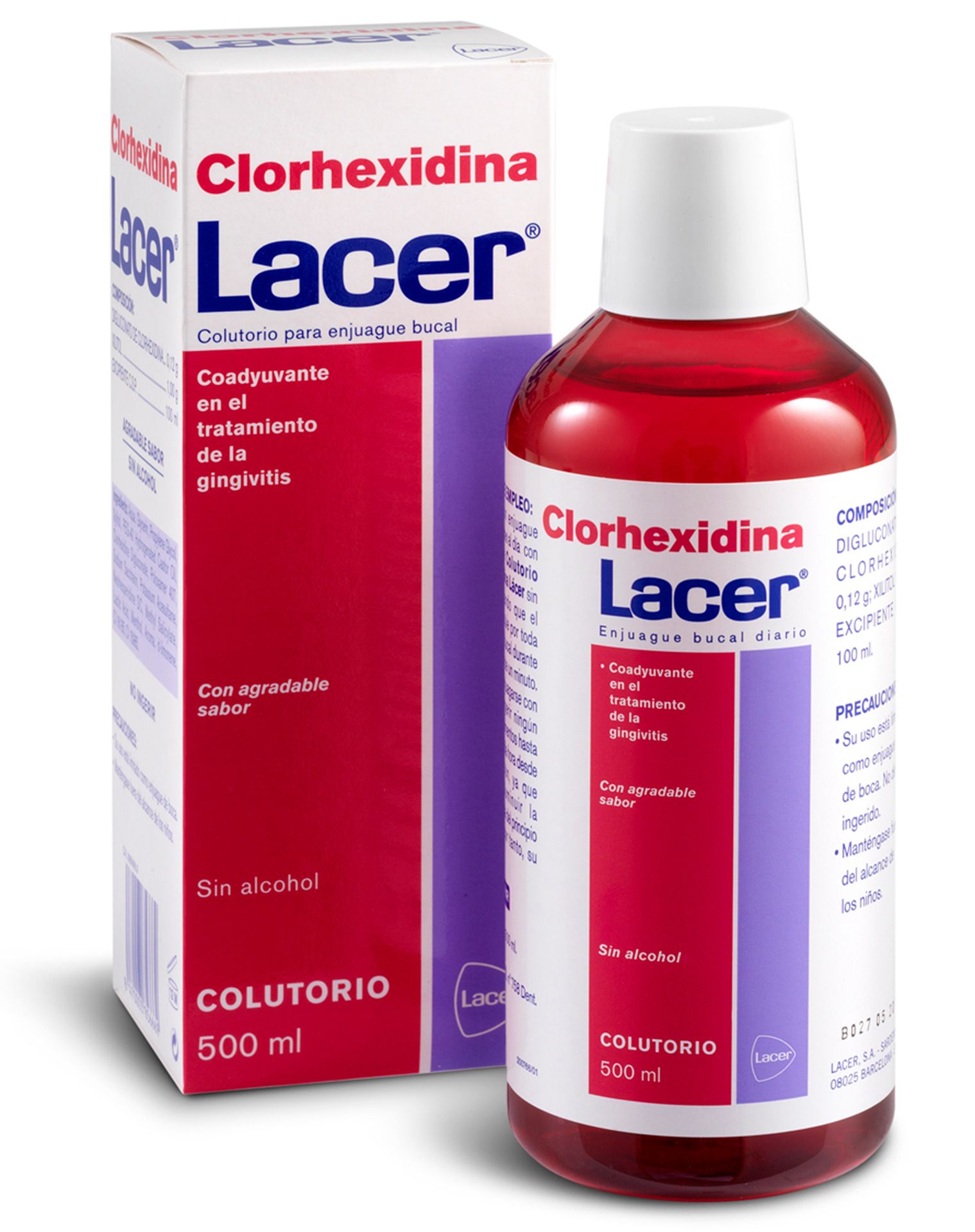 Clorhexidina Lacer colutorio es enjuague bucodental que se utiliza como antiséptico de amplio espectro. Es muy eficaz frente a los microorganismos de la placa dental (o biofilm).
