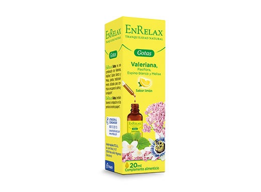 EnRelax Gotas, es una combinación de Valeriana, Pasiflora, Espino blanco y Melisa, plantas tradicionalmente utilizadas para contribuir a recuperar la calma y la relajación.