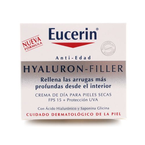 Crema de día para pieles secas que por su contenido en ácido hialurónico y principios coadyuvantes favorece la reducción visible de las arrugas de la frente, boca y alrededor de la nariz. Con filtros UVA y FPS 15, constituye una excelente base de maquillaje. MODO DE EMPLEO: Aplicar en la cara, cuello y escote mediante un ligero masaje después de la limpieza del cutis. PRESENTACIÓN: Tarro con 50 ml.