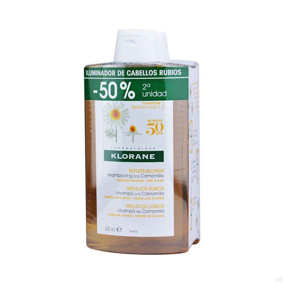 KLORANE CHAMPÚ REFLEJOS DORADOS A LA CAMOMILA 400 ML +400 ML. 2º UNIDAD 50%