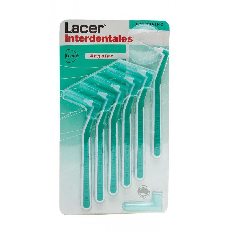 Lacer Cepillo Interdental Angular ExtraFino (0,6 mm) 6 u.Indicado para cepillo interdental que permite eliminar la placa bacteriana en losespacios interdentales estrechos. Es ideal paraespacios interdentales muy estrechos (0,6 mm).