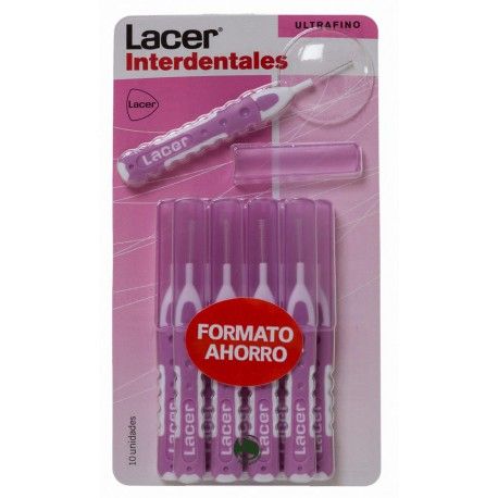 Lacer Cepillo Interdental Ultrafino Recto (0,45 mm) 10 u.Indicado para eliminar la placa bacteriana en los espacios interdentales estrechos. Idóneo para prótesis fijas, implantes y portadores de aparatos de ortodoncia. Es ideal paraespacios interdentales extremadamente estrechos (0,45 mm).