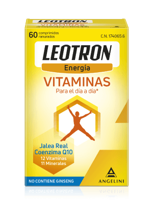 Leotron Vitaminas es un complemento alimenticio con Jalea real, Coenzima Q10, 12 Vitaminas y 11 Minerales. No contiene ginseng.