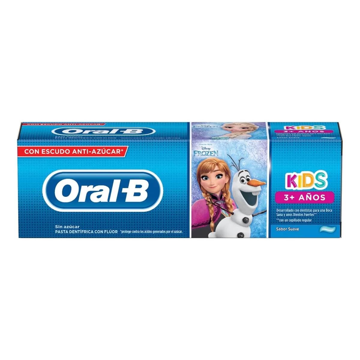 La pasta dentífrica Oral-B Kids con personajes de Disney (Frozen/Cars), se ha desarrollado junto con dentistas para disfrutar de una boca sana y unos dientes fuertes con un cepillado regular. Protege los dientes frente a los ácidos de los azúcares presentes en la comida. Su sabor suave es ideal para niños a partir de 3 años.