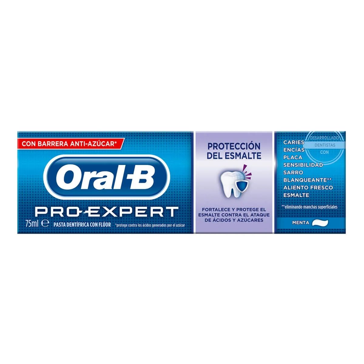 El dentífrico Oral-B Pro-Expert Protección de Esmalte, desarrollado por los expertos de Oral-B, fortalece y protege el esmalte de los efectos del azúcar y la acidez de los alimentos. El azúcar y los ácidos de los alimentos que comemos a diario, como los zumos de fruta y las bebidas carbonatadas pueden dañar el esmalte que recubre los dientes. Contiene un complejo de fluoruro de estaño, una combinación exclusiva de ingredientes. Protege y actúa sobre los problemas bucales: caries, placa, problemas de las encías, sensibilidad, manchas, mal aliento, sarro y erosión del esmalte.