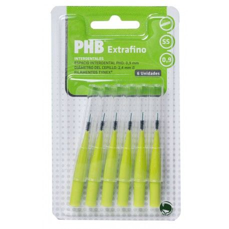 PHB Cepillo Interdental Extrafino 0.9 mm 6 U.Cepillo especialmente diseñado para una limpieza eficaz de las bacterias que se acumulan entre los espacios de los dientes, principales causantes de numerosas enfermedades de las encías. Tiene un mango lisopara evitar la acumulación de gérmenes.