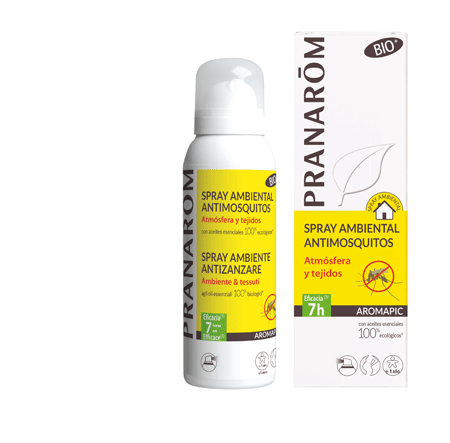Spray “2 en 1“, atmósfera y tejidos, repele eficazmente de los mosquitos europeos y tropicales (Aedes albopictus, Aedes aegypti, Culex pipiens, Anopheles gambiae) y también las avispas y abejas durante 7 horas. Pulverizado en el aire o sobre los tejidos, este repelente natural de olor agradable, está formulado con Citrodiol, obtenido de aceite esencial Eucalipto azul, y por una mezcla de aceites esenciales de Citronela, Geranio, Lavanda, conocidos por sus propiedades repelentes.