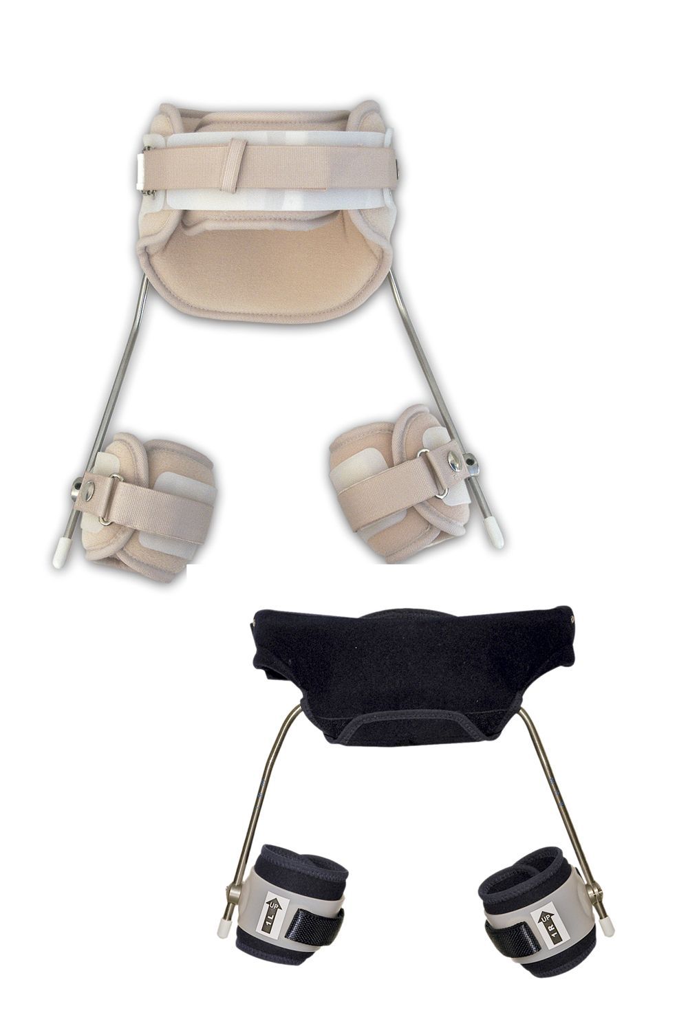 Utilizando una geometría simple se consigue una abducción de cadera que es ancha cuando el niño se sienta pero que se estrecha cuando se mantiene de pie. Se compone de los siguientes elementos: una barra posterior de cintura que unida a una almohadilla de cierre anterior sostiene dos conjuntos articulares. Estos tienen unos orificios dentro de los cuales se acoplan mediante anillos unas barras ligeramente dobladas para las piernas. Las piernas se mantienen en posición mediante unos corseletes para los muslos. El conjunto articular queda acoplado mediante tornillos de acero que se aseguran con una llave Allen. Las barras de las piernas permanecen fijas en su sitio mediante un pequeño tornillo prisionero.