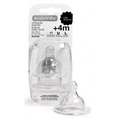 EstaTetina Redonda de Suavinexestá indicada para darle al niño alimentos más densos como papillas.