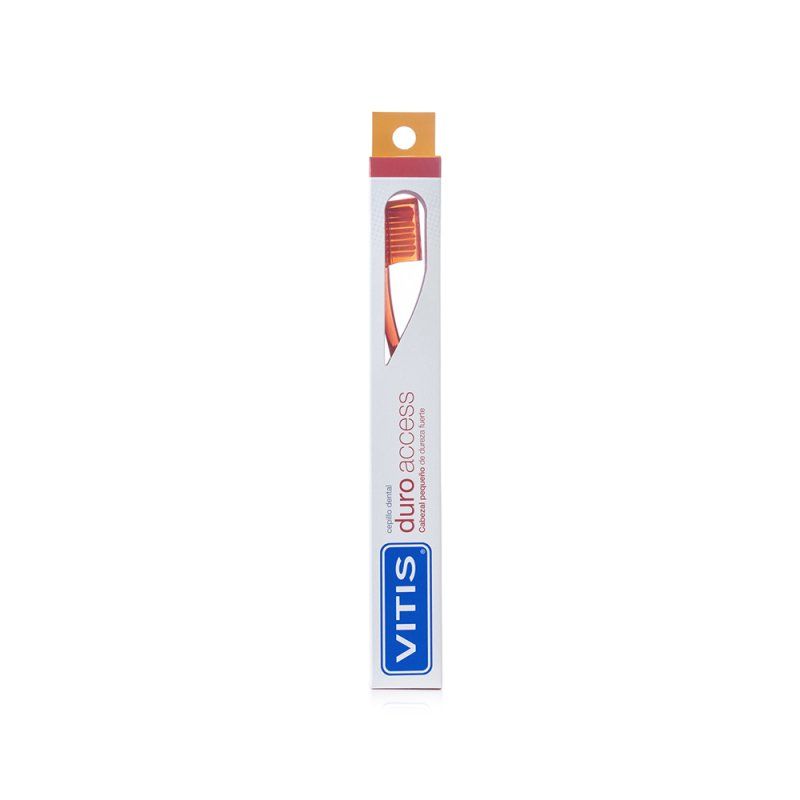 VITIS® duro accesses un cepillo de uso diario con cabezal de tamaño pequeño que permite acceder fácilmente a las zonas posteriores de la boca y disminuir los posibles reflejos nauseosos.